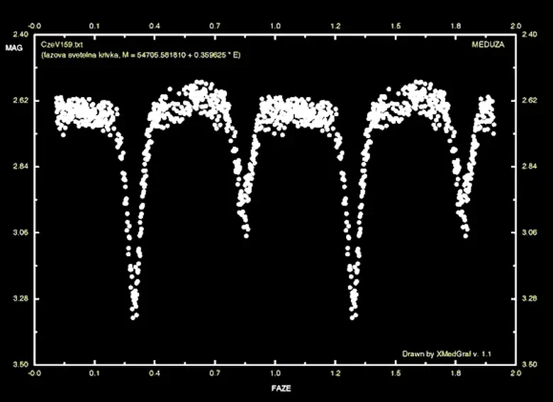 Zracováním CCD snímků jsme získali přehled o změně jasnosti proměnné hvězdy v podobě grafu. Na vodorovné ose je vynesen čas ve dnech a jejich zlomcích (tzv. juliánské datum, JD) a na svislé ose změna jasnosti. U zákrytových proměnných hvězd má graf (světelná křivka) svůj charakteristický tvar. Ve chvíli kdy dochází k zákrytu složek dvojhvězdy, nastává rychlý pokles jasnosti a po chvíli opět příkrý vzestup při odkrývání složek. Světelná křivka v průběhu těchto změn vykreslí v grafu tvar ostrého písmene V. V bodě s minimem jasnosti určujeme časovou souřadnici vrcholu onoho "písmene V". Pokud se nám podaří určit nejméně dva takové okamžiky, zjistíme oběžnou periodu dané dvojhvězdy a z toho např. poměr hmotností obou hvězd, a také nám to umožní předpovědět, kdy nastane další zákryt. Jestliže se dlouhodobě monitorují přesné okamžiky minim zákrytových proměnných hvězd, tak můžeme dojít často k překvapivým objevům. Viditelně se některé dvojhvězdné systémy zpožďují a potom předcházejí v čase okamžiku minima. Příčinou těchto změn periody může být přetékání hmoty z jedné hvězdy na druhou, čímž se mění poměr hmotností a tedy i perioda oběhu. Nebo může systém dvojhvězdy ovlivňovat ještě další složka, kterou nebylo možné jinými způsoby odhalit (hnědý trpaslík či planeta).
