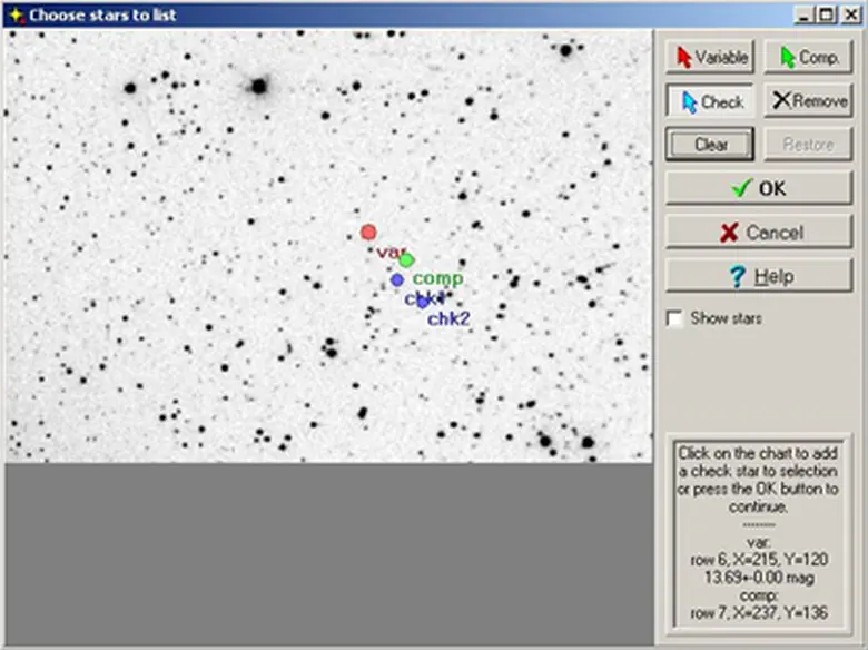 Kromě samotného dalekohledu, který soustřeďuje parsky světla do ohniskové roviny, používáme citlivý CCD detektor pro digitalizaci vytvořeného obrazu. CCD detektor pořídí snímek vybrané části oblohy společně s hvězdou, jejíž změnu jasnosti budeme analyzovat. Nastavením vhodných parametrů může začít automatické sledování hvězdy dalekohledem a pořizování souboru expozic. Během noci pořídíme až několik set snímků o celkové velikosti desítek megabytů. Proto, aby nám CCD detektor umožnil kromě pořízení snímku oblohy také proměření jednotlivých parametrů jasnosti exponovaných hvězd, je nutné provést korekce snímku. Pro korekce se využívá expozic, které se pořizují mimo pozorovací čas, například po západu slunce nebo časně ráno. První korekční snímek, tzv. flat field ("světlý" snímek), je vlastně takový záznam vlastností optické trasy systému dalekohled - filtry - kamera. Mapuje citlivost jednotlivých pixelů CCD detektoru na světlo. Druhý korekční snímek, tzv. dark frame (temný snímek), mapuje citlivost pixelů na temný proud, závisí na expoziční době a teplotě čipu. Temný snímek můžeme exponovat jednoduše s uzavřeným krytem objektivu dalekohledu. U série expozic obou korekčních snímků potom provedeme zprůměrování, aby nedocházelo k náhodnému šumu. Jak vypadají korekční snímky v porovnání s tzv. light frame (ostrým snímkem) oblohy, můžete vidět na obrázku (flat - dark - light frame).