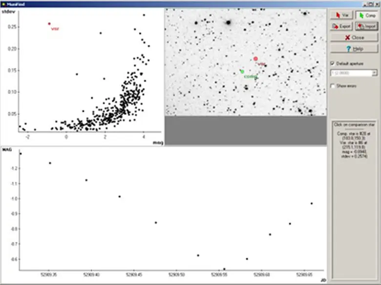 Pro sestavení jednoho měření, jednoho bodu na světelné křivce, musíme od ostrého snímku odečíst temným snímek a provést korekci světlým snímkem. Pro zpracování souboru CCD expozic používáme software CMuniPack od Ing. Davida Motla. Pomocí tohoto programu je provedení potřebných korekcí snímku velice jednoduché. Není to však jediná vlastnost, kterou program umožňuje. Cílem zpracování CCD snímků je mapovat případné změny jasnosti exponovaných hvězd. Program vyhodnotí jasnosti všech hvězd na snímku a nabídne uživateli přehled změn, které nastaly v průběhu celého pozorování. Uživatel potom musí posoudit, zda změny jasnosti předkládané k hodnocení jsou skutečně způsobeny změnou intenzity jasu proměnné hvězdy, nebo se jedná o analýzu nevhodně pořízených snímků oblohy. Proto si musíme být jisti, že vstupní soubory CCD snímků byly pořízeny co nejkvalitněji.